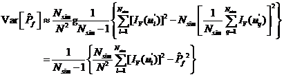 對式所示的失效概率估計(jì)值求數(shù)學(xué)期望和方差分別有以下兩式成立。