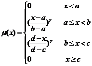 當(dāng)b、c兩點重合時,隸屬函數(shù)蛻變?yōu)橄率?/font>,其形狀如圖7.2(b)所示。