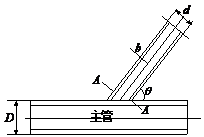 算例8.2:如圖8.3所示的Y型節(jié)點(diǎn)管,剖面A-A的載荷為軸向力