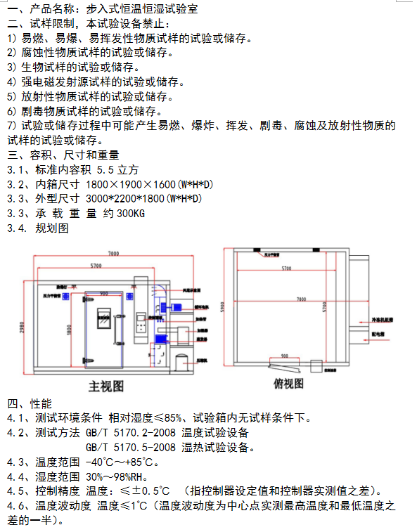 步入式恒溫恒濕試驗室技術(shù)參數(shù):